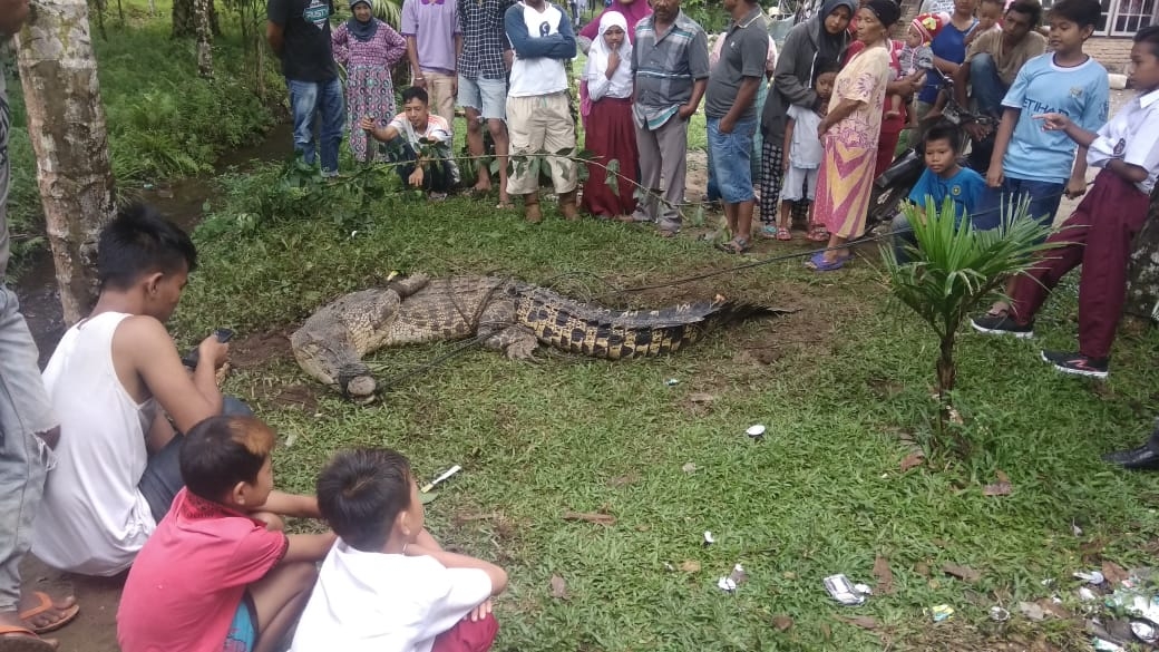 “Masyarakat yang mendengar hal tersebut langsung berbondong-bondong datang untuk melihat. Setelah melihat masyarakat langsung berinisiatif untuk menangkap buaya ini. Karena kalau tidak ditangkap tentu akan mengancam keselamatan masyarakat sekitar. Dikarenakan buaya ini sudah mulai merangsek masuk ke permukiman warga ,tentu kalau ini sudah dilakukan sang buaya bakal menjadi acaman besar bagi keselamatan warga nantinya.