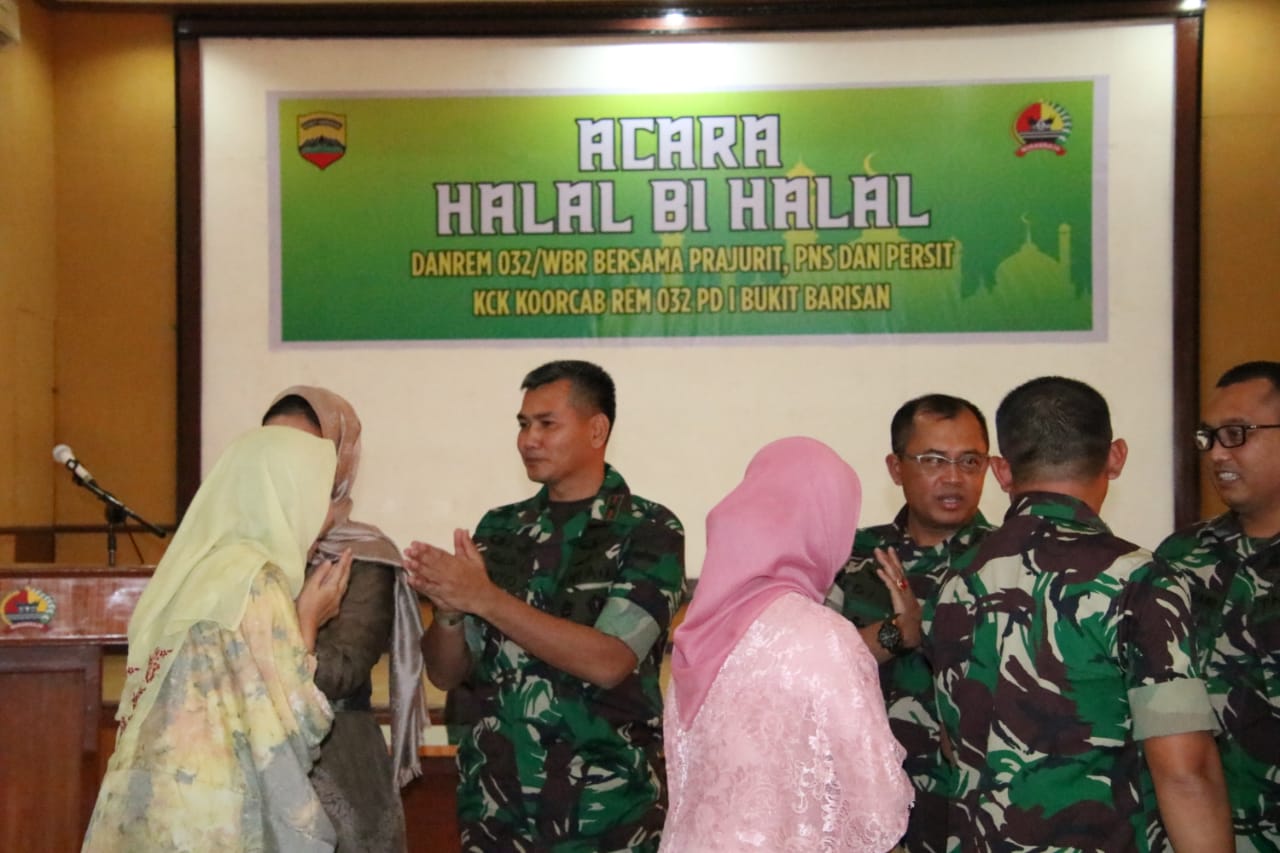 Maka dalam mengharmoniskan hubungan kekerabatan antar sesama, Korem 032/Wirabraja menggelar halal bi halal bersama prajurit, PNS, dan Persatuan Istri Prajurit (Persit) KCK Koorcab Rem 032 PD I Bukit Barisan.
