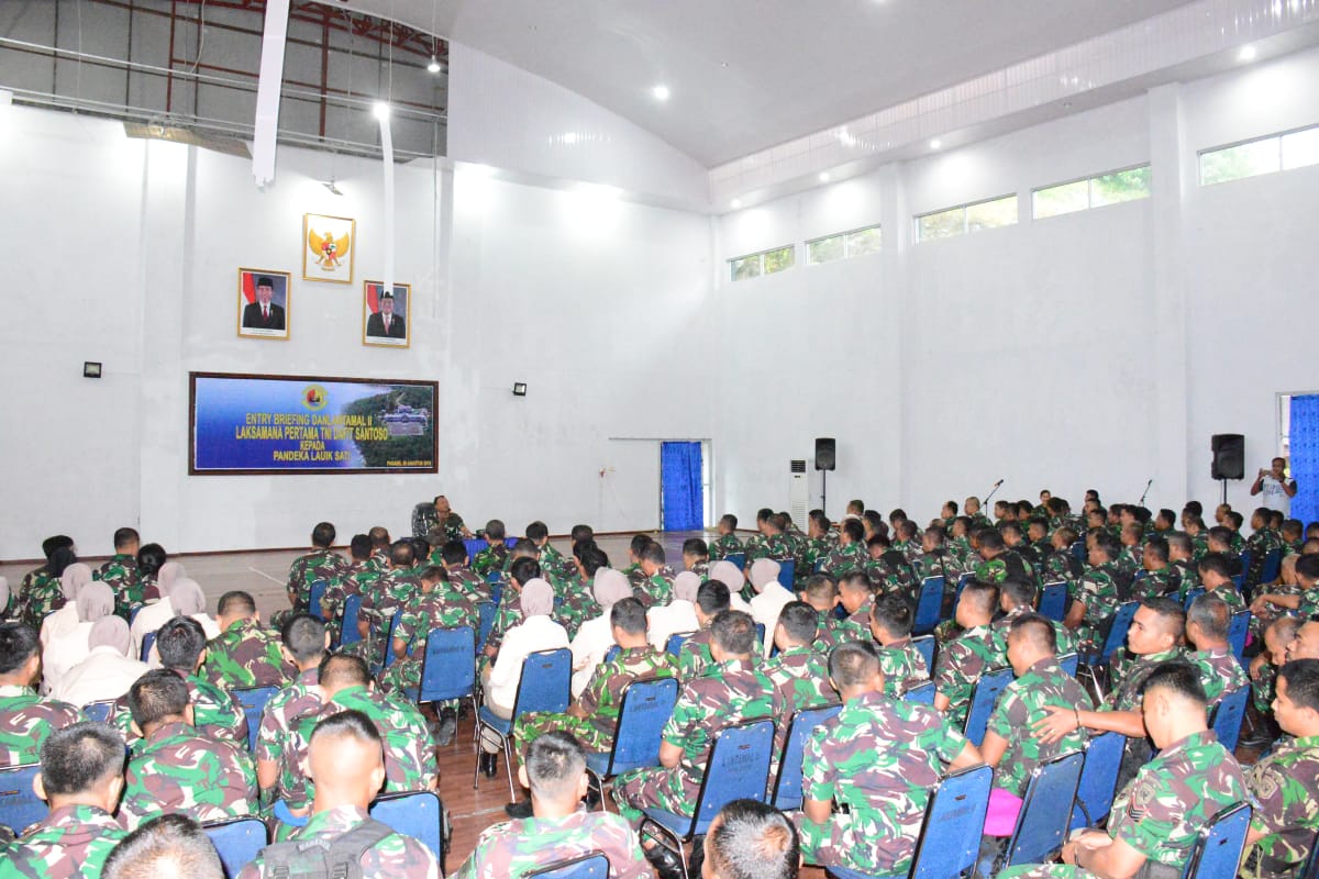 PADANG – Danlantamal II Laksamana Pertama TNI Dafit Santoso lakukan entry brifieng (pengarahan – red ) kepada Pandeka Lauik Sati(Prajurit Lantamal II Padang, sebutanya untuk mengangkat ke arifan lokal di gedung Nanggala Markas Komando (Mako) Lantamal II jalan Bukit Peti Peti Teluk Bayur Padang, Senin (26/8/2019) sekitar pukul 08.00 WIB.