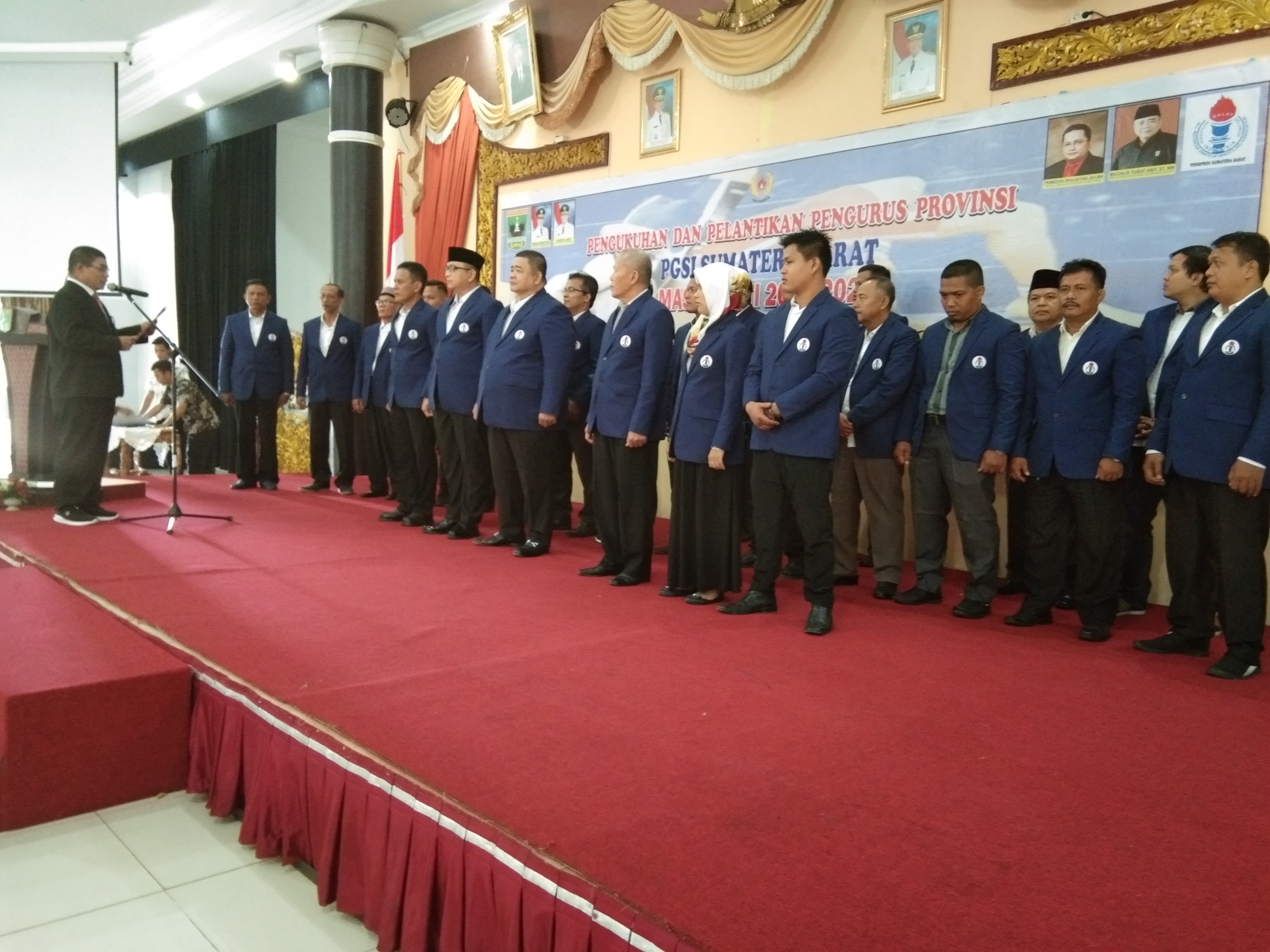 PADANG-Kepengurusan Pengprov PGSI Sumbar periode 2019 – 2023 dilantik Ketum PB PGSI Tri Media Pandjaitan di Auditorium Gubernuran Sumbar, Sabtu (28/9/19). Kabinet pengurus PGSI Sumbar periode ini digawangi Mukhlis Yusuf Abit (Ketua) dan Sekretaris Ediswal.