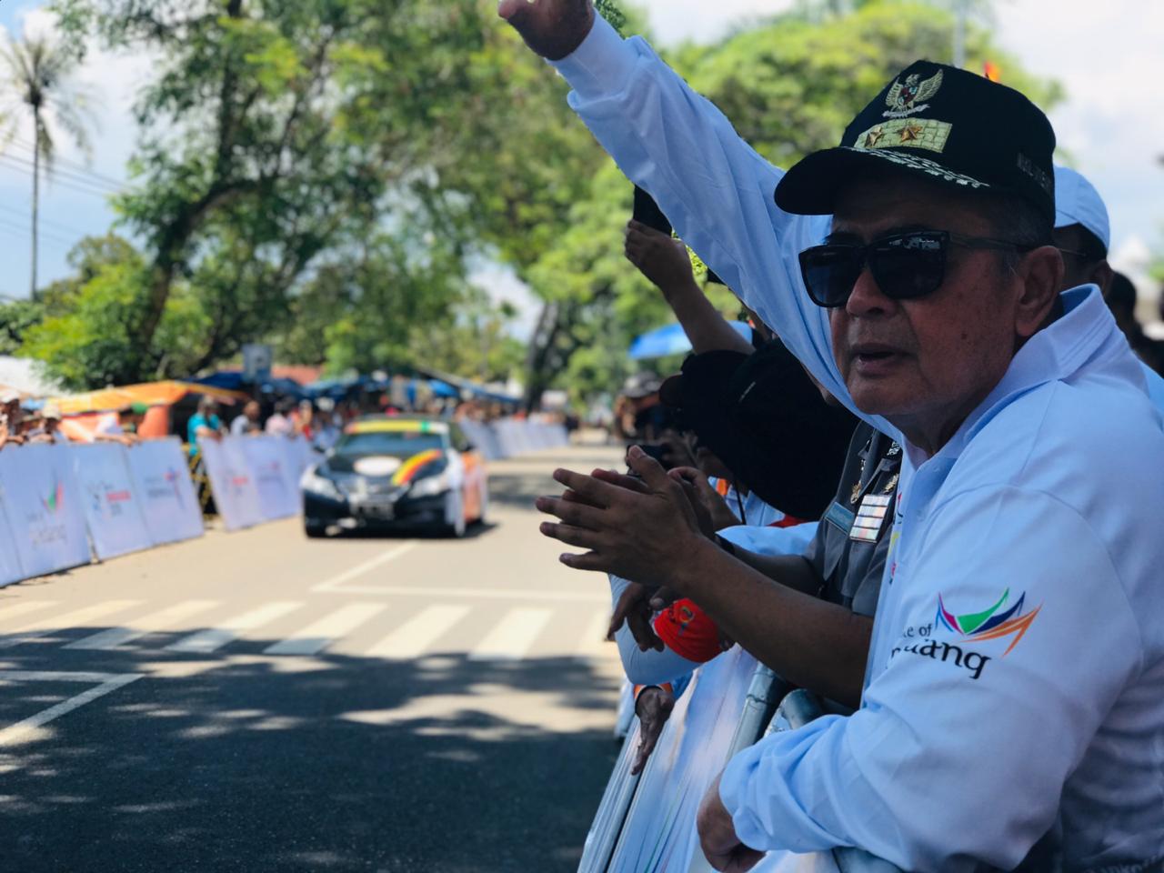 TANAHDATAR — Wakil Gubernur Sumbar Nasrul Abit menyambut para pembalap Tour de Singkarak (TdS) 2019 pada Etape I, Sabtu (2/11 /19). Etape I ini start dari Pantai Gandoriah, Kota Pariaman pukul 10.00 WIB lalu finish di Istana Basa Pagaruyung, Tanahdatar sekitar pukul 12.50 WIB.