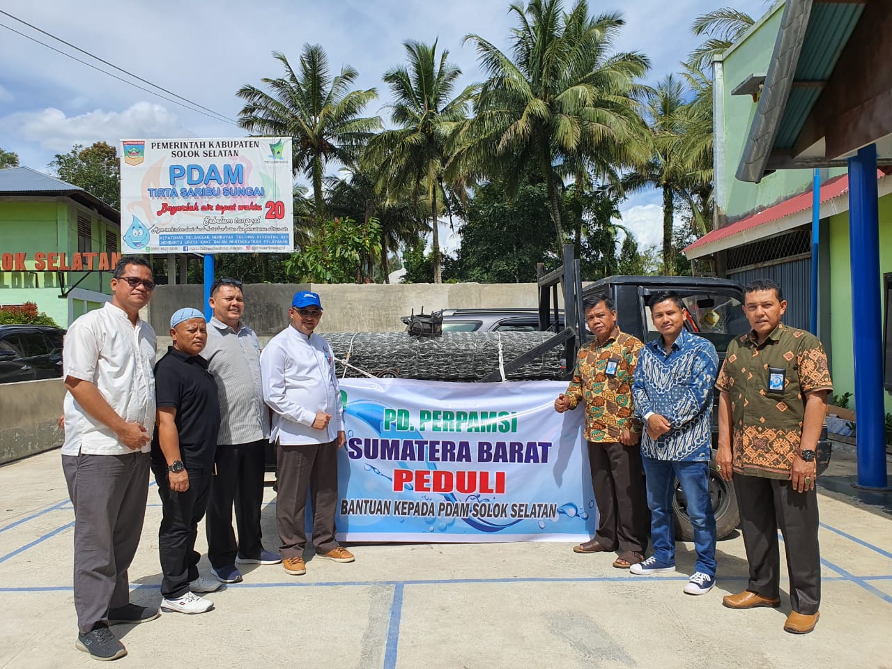 PADANG – Sebagai wadah sesama perusahan yang bergerak mendistribusikan air minum, Pengurus Daerah Persatuan Perusahaan Air Minum Seluruh Indonesia (PERPAMSI) Sumbar salurkan bantuan bagi PDAM Kabupaten Solok Selatan, Jumat (6/3/2020).
