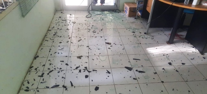 PADANG-Kaca pintu Kantor Komite Olahraga Nasional Indonesia (KONI) Sumbar diduga dirusak orang tak dikenal (OTK) Minggu dinihari (23/8). Terlihat kaca pintu dan jendela berserakan di teras dan dalam kantor di bilangan Jalan Rasuda Said Padang tersebut. Sedikitnya, ada sekitar empat lubang kaca pintu kantor KONI itu telah dirusak.