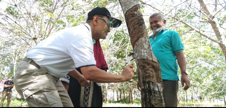 “Kok dapek harga bahan mentah karet tinggi sahinggo mampu maningkekkan ekonomi kami,” kata seorang petani karet.