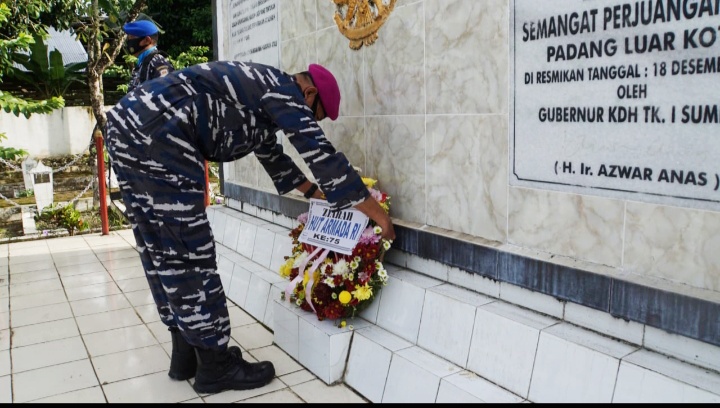 PADANG – Pangkalan Utama TNI Angkatan Laut (Lantamal) II Padang, sambut Hari Armada RI Tahun 2020, dengan melaksanakan ziarah ke Taman Makam Pahlawan (TMP) Kuranji Kecamatan Kuranji Kota Padang, Jumat (4/12/20).