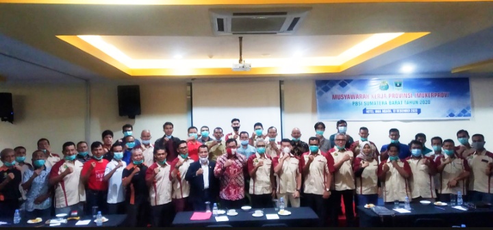 PADANG– Kadispora Sumbar Bustavidia buka Musyawarah Kerja (Musker) PBSI Sumbar di Inna Muara Hotel Padang, Sabtu (12/12 /2020). Selain itu Musker 2020 tersebut juga dihadiri Ketua KONI Sumbar Syaiful SH.
