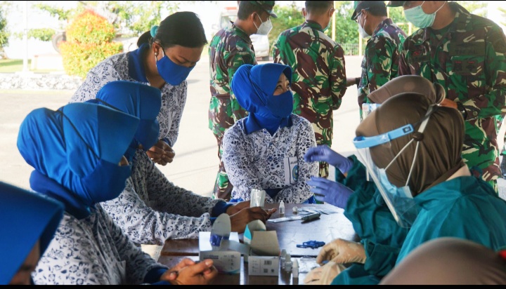 Pelaksanaan Rapid Test ditinjau langsung Komandan Pangkalan Utama TNI AL (Danlantamal) II Laksamana Pertama TNI Hargianto, SE., MM., MSi(Han). dan Kepala Dinas Kesehatan (Kadiskes) Lantamal II Letkol Laut (K) Zulfitri.SSi., MKes.