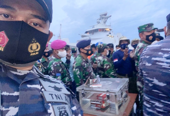 Aksi kemanusiaan yang dilakukan beberapa unsur dari TNI Angkatan Laut serta personel terbaiknya, Selasa sore 12 Januari 2021 membuahkan hasil penemuan kotak hitam. Dibawa KRI Kurau 856 yang dikomandani Mayor Laut (P) Nurochim.ST membawa kotak hitam dari lokasi penemuan di sekitar Pulau Laki ke dermaga Jakarta International Terminal Container (JITC). Flight Data Recorder atau FDR (kotak hitam) ditemukan im penyelam dari Dinas Penyelaman Bawah Air (Dislambair) Koarmada 1.