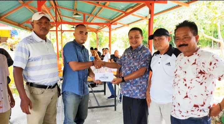 PADANG-Ketua Pengcab PSTI Padang M Fikar Dt Rajo Magek motivasi atlet sepaktakraw yang berhasil memenjuarai Liga Sepaktakraw se Sumbar di Sport Hall GOR H Agus Salim, 6-7 Februari, dengan pemberian bonus. Penyerahan bonus dilaksanakan di Radja Minas, Kamis (11/2/2021).