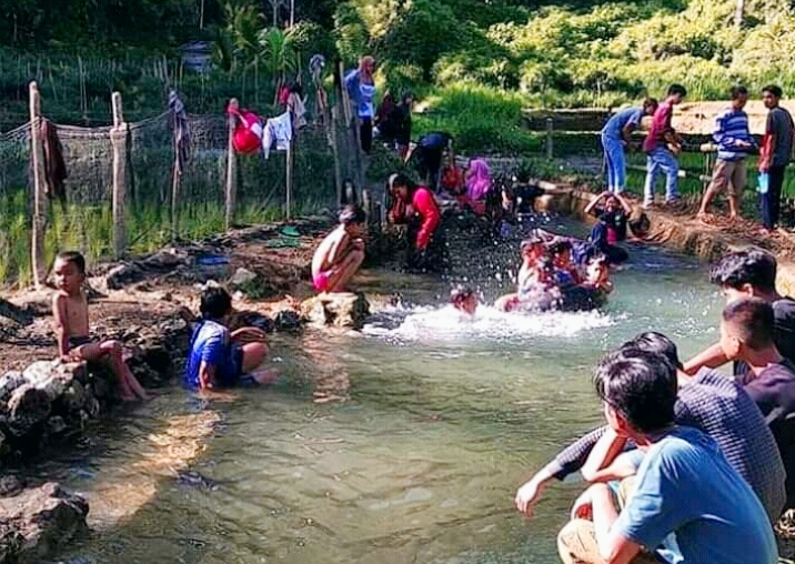 Ia katakan, air yang mengalir di sungai selebar 3 meter itu, terbilang alami dan selalu bersih sebab perputaran air selalu berganti. Sehingga setiap wisatawan yang mandi tidak perlu kwatir dengan air kotor bekas mandi.