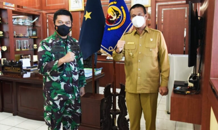 PADANG – Komandan Pangkalan Utama TNI AL (Danlantamal) II Laksamana Pertama TNI Hargianto.SE.,MM.,MSi (Han) di dampingi Wadanlantamal Kolonel Marinir Freddy JH Pardosi.SE.,SH.,MM.,PJU Lantamal dan Kadisharkan Danlantamal menerima kunjungan rombongan Walikota Pariaman DR. Genius Umar.M.Si di ruang rapat Danlantamal jalan Bukit Peti Peti Teluk Bayur Padang, Senin (7/6/2021).