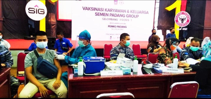 PADANG – Serbuan Vaksinasi yang dilaksanakan Dinas Kesehatan (Diskes) Pangkalan Utama TNI AL (Lantamal) II, menyasar ke PT Semen Indarung Padang (PT SP), Jumat (16/7/2021).
