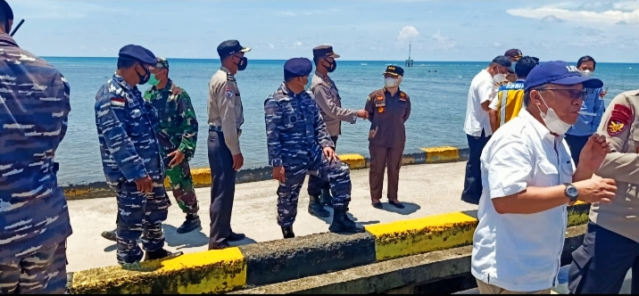 BENGKULU – Pangkalan TNI Angkatan Laut Bengkulu bersama rombongan Kementerian Koordinator Maritim dan Investasi, Wakil Gubernur Bengkulu dan DPD RI berkunjung ke Pulau Enggano dalam peninjauan infrastruktur dan kegiatan serbuan vaksinasi warga pulau terluar di Kecamatan Enggano, Bengkulu Utara, Senin (27/9/2021).