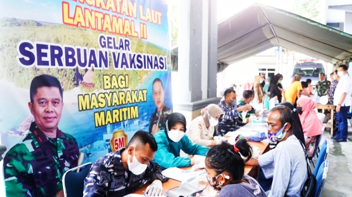 Serbuan Vaksinasi Maritim TNI AL ini merupakan bentuk kepedulian dan keseriusan pemerintah dalam penanganan pandemi Covid-19. Lantamal II sudah menurunkan Nakes ke berbagai tempat lokasi di adakan serbuan vaksinasi.