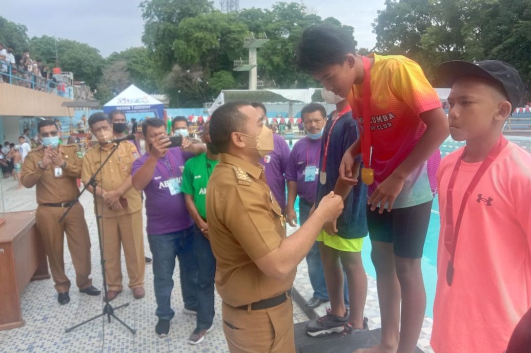 PADANG-Wakil Gubernur Sumbar Audy Joinaldy memberikan apresiasi penuh atas suksesi terselenggaranya Kejuaraan Renang Antar Club se Sumatera yang diselenggarakan Intrust dan Club Renang lumba-lumba di kolam renang Teratai Kompleks GOR H Agus Salim, Senin (10/1/2022).