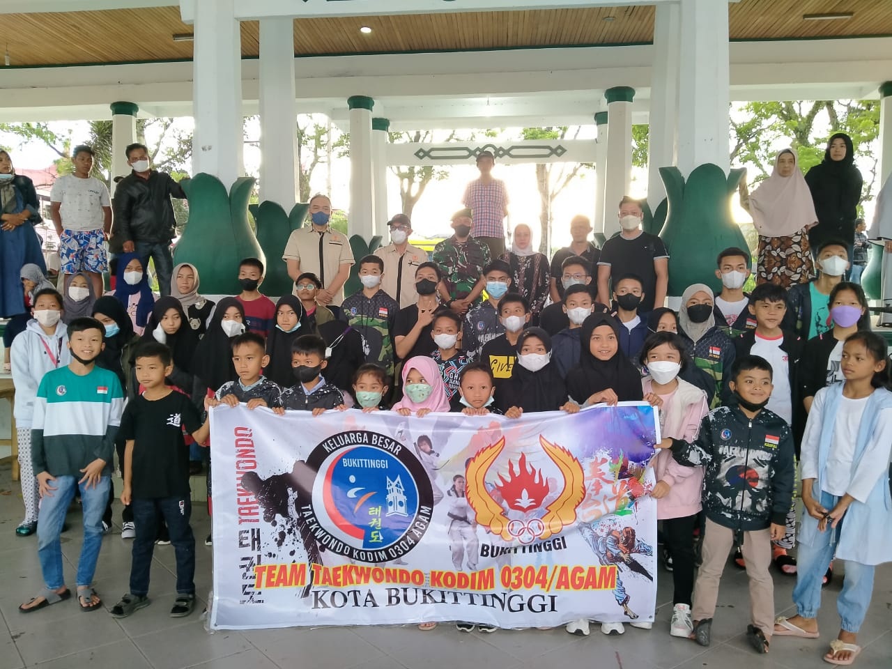 Pelepasan para atlet Taekwondo bertempat di panggung kehormatan Lapangan Kodim 0304 Agam, Rabu (23/2/2022), disaksikan perwakilan Kodim 0304 Agam, KONI Bukittinggi, Manager Dojang Kodim 0304 Agam dan pelatih Taekwondo.