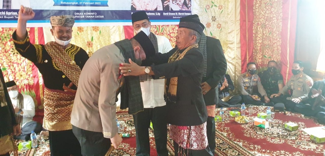 Keputusan pemberian gelar Sangsako Adat itu disampaikan Ketua LKAAM Tanahdatar H. Aresno Dt. Andomo, SAg yang ditandai dengan pengalungan Kain Sarung kepada Kapolda Sumbar Irjen Pol Teddy Minahasa Putra, di Rumah Gadang LKAAM Tanahdatar, Minggu (27/2/2022).