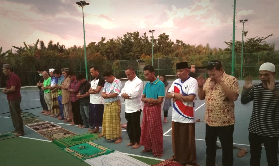 PADANG — Anggota Padang Tennis Club menyemarakan Ramadhan 1443 melalu gelaran berbuka bersama di Lapangan Tenis Sekora, Komplek Pasir Putih Blok V/7, Tabing Padang, kemudian dilanjutkan dengan shalat Magrib berjemaah yang dibentangkan tikar di tengah lapangan tenis, Minggu (17/4/2022)
