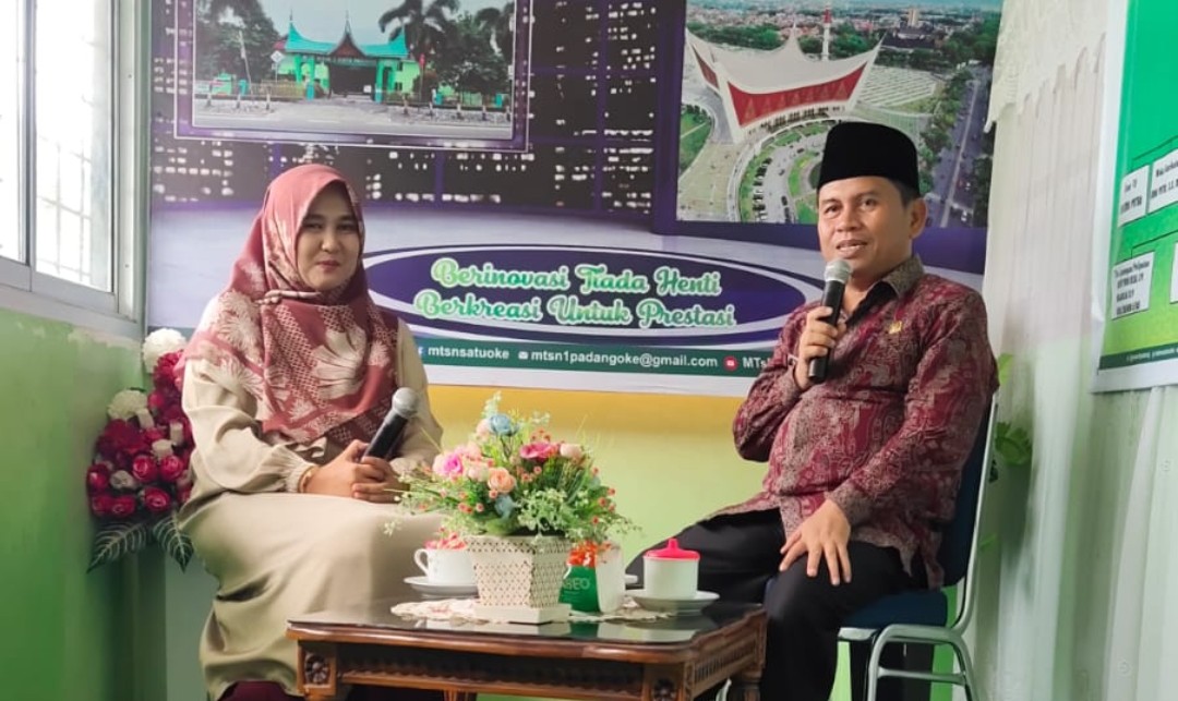 PADANG – Hari bersejarah bagi Studio Humas Madrasah Tsanawiyah Negeri (MTsN) 1 Kota Padang untuk kedua kalinya orang nomor 1 di Kementerian Agama (Kemenag) Kota Padang H. Edy Oktafiandi hadir sebagai bintang tamu Talkshow LIVE di Channel Youtube MTsN 1 Padang TV Jumat, (12/8/22).