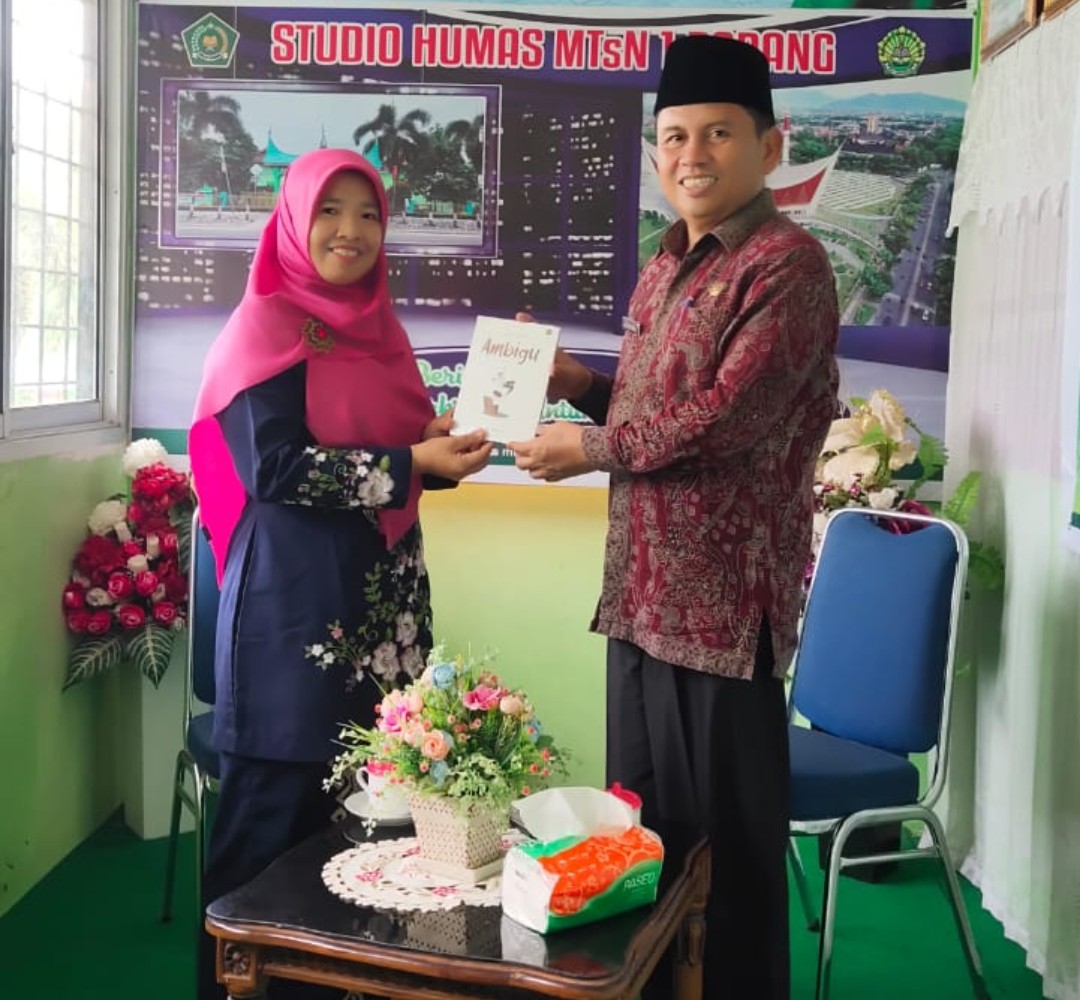 Idra Putri, Kepala MTsN 1 Padang Serahkan Buku Kumpulan Puisi kepada Kakan Kemenag