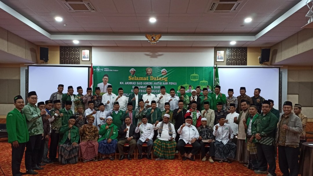 Kegiatan Strategi Penguatan NU di Sumatera Barat dihadiri Rais Syuriah PWNU Hendri, Katib Joben, pengurus PCNU se-Sumbar, ketua lembaga dan ketua badan otonom.(drd)