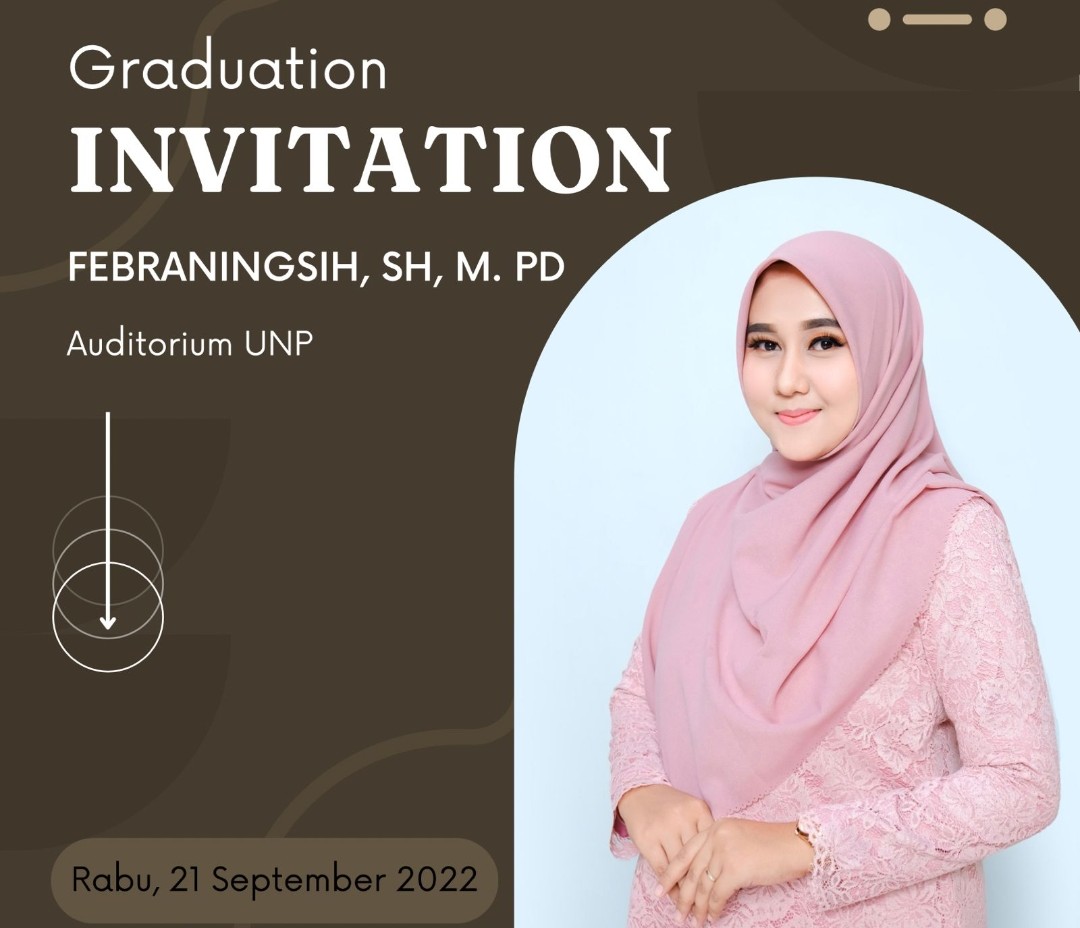 PADANG – Febraningsih guru Pendidikan Kewarganegaraan (PKn) Madrasah Tsanawiyah Negeri (MTsN) 1 Kota Padang selesaikan S.2 Program Magister Pendidikan Pancasila dan Kewarganegaraan Fakultas Ilmu Sosial (FIS) Universitas Negeri Padang (UNP) ditandai dengan Prosesi Wisuda di Auditorium UNP Padang, Rabu (21/9/22).