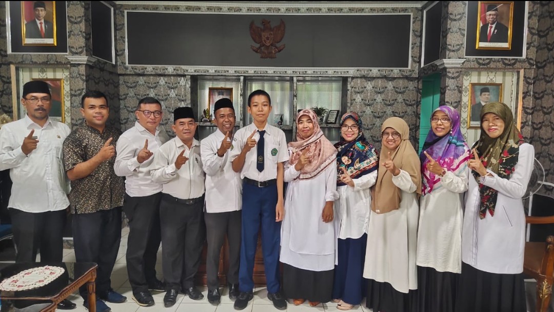 PADANG – Kepala Madrasah Tsanawiyah Negeri (MTsN) 1 Kota Padang Isrizal melepas enam siswanya menuju Kemah Karya Madrasah (KKPM) Sumatera Barat (Sumbar) d iruang kerjanya, Selasa, (27/09/22).