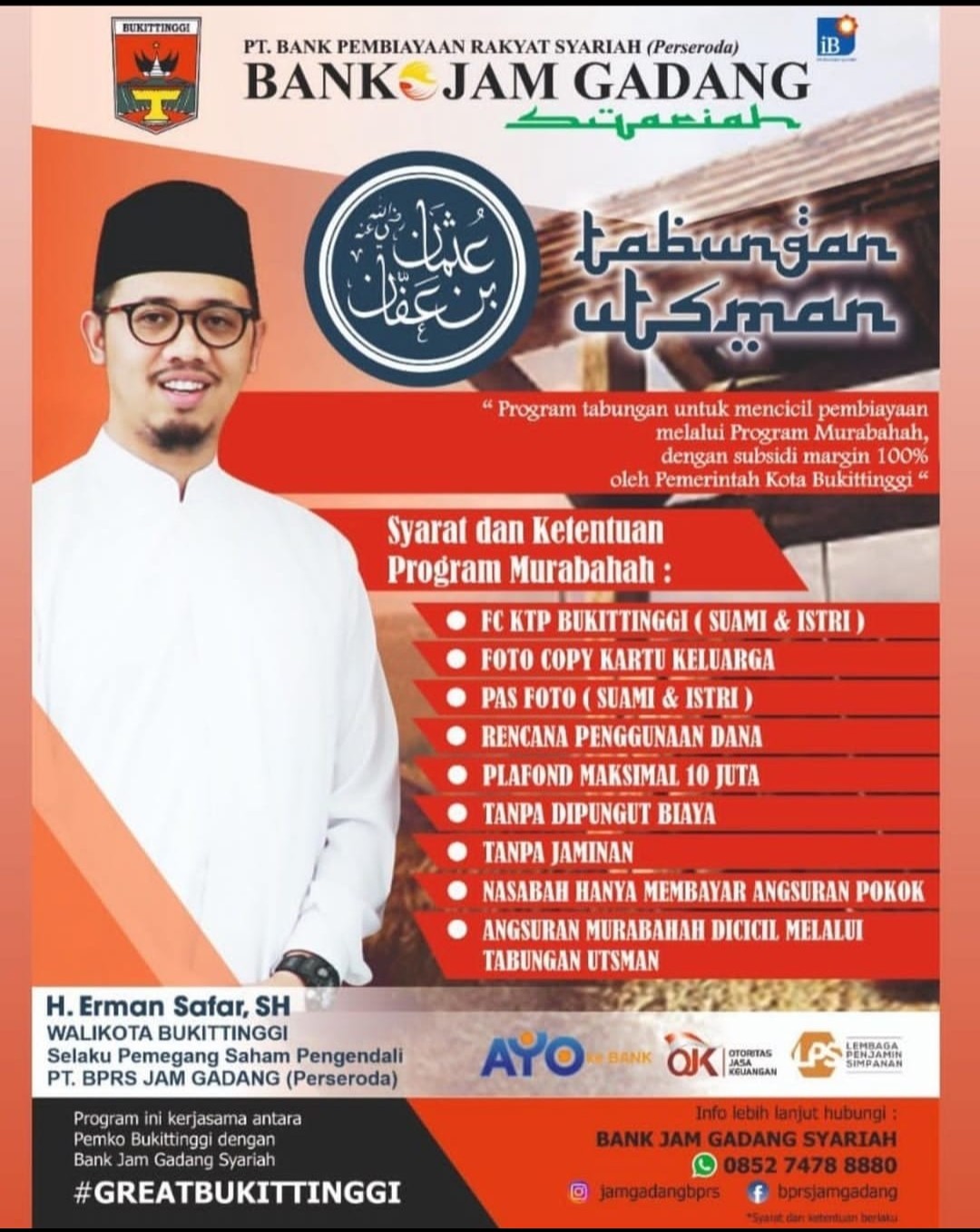 Tabungan Utsman merupakan program kolaborasi antara Pemko dengan BPRS Jam Gadang. Tabungan Utsman diluncurkan untuk membantu masyarakat dalam pemulihan ekonomi warga.