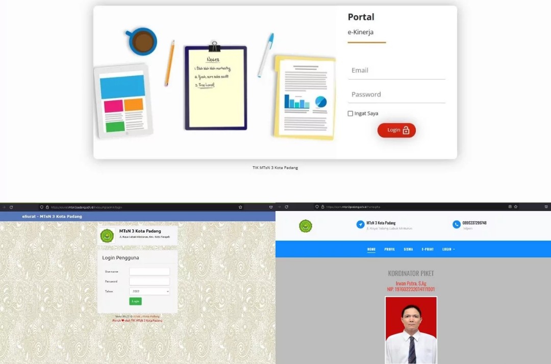 Yang perdana dari transformasi digital pada MTsN 3 Padang yaitu aplikasi E-Kinerja yang digunakan pendidik dan tenaga kependidikan di MTsN 3 Padang. Aplikasi ini memudahkan pendidik serta tenaga kependidikan dalam melakukan perekaman aktivitas kinerja. Jadi tak perlu khawatir kalau ada kesalahan ataupun kehilangan data, karena data tersimpan dengan aman di internet. Ketika dibutuhkan dapat dipanggil kapan saja dan sesuai keinginan yang diperlukan tanggal berapa. Aplikasi ini dapat diakses melalui laman https://ekinerja.mtsn3padang.sch.id