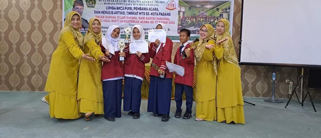 PADANG -Tiada hari tanpa prestasi. Kalimat ini pantas disematkan kepada MTsN 1 Padang.. Sukses mengantarkan 4 dutanya ketangga juara, Madrasah yang terletak dipintu gerbang masuk ibu kota Provinsi itu menempati posisi dua besar, pada lomba yang digelar MGMP Bahasa Indonesia MTs Kota Padang, di aula Kantor Kemenag Padang, Sabtu, (5/11/22).