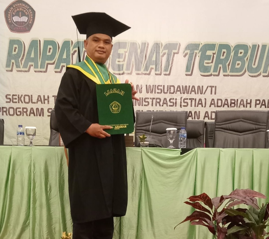 PADANG — Pengelola Humas Kantor Kementerian Agama (Kemenag) Kota Padang Zarisman Tanjung telah menamatkan S.1 Sarjana Administrasi Bisnis (S.A.B) di Sekolah Tinggi Ilmu Administrasi (STIA) Adabiyah Padang, Senin (19/12/2022 ).