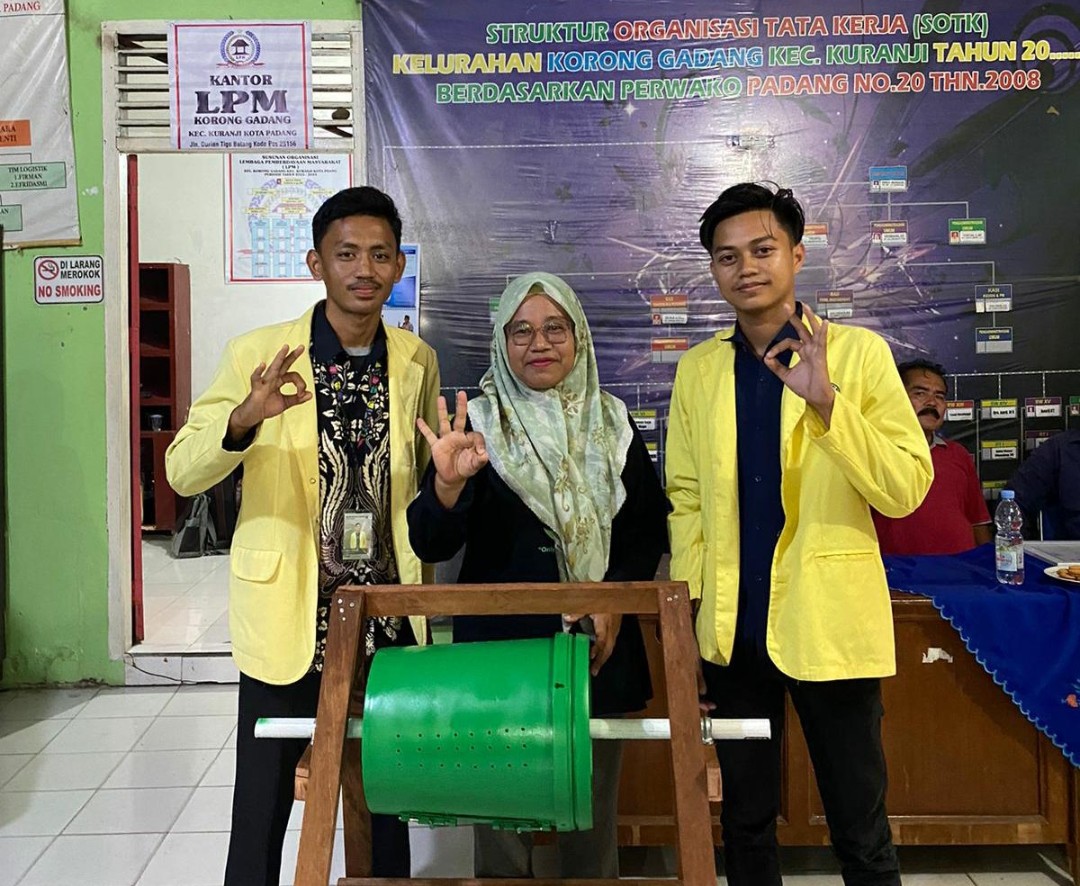 PADANG–Mahasiswa KKN Tematik UNP Zero Wasthe Compusta serahkan Rolling Kompos kepada Bank Sampah Pancadaya (BSPD) 11 RW 06 Taratak Paneh, Korong Gadang, kota Padang.