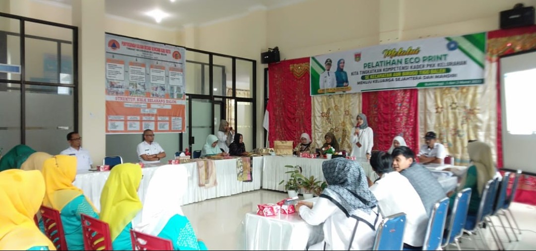 BUKITTINGGI – Camat Aur Birugo Tigo Baleh (ABTB) Hastine Atas Asih yang mewakili Walikota Bukittinggi Erman Safar secara resmi membuka pelatihan ECO PRINT di kantor lurah Belakang Balok kecamatan ABTB, Rabu,(1/3/2023).