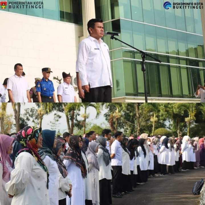 Dalam apel gabungan menjadi hari pertama ASN Bukittinggi mulai bekerja pascalibur Idul Fitri 1444 H, Martias mengucapkan selamat Idul Fitri 1444 H, mohon maaf lahir dan batin.