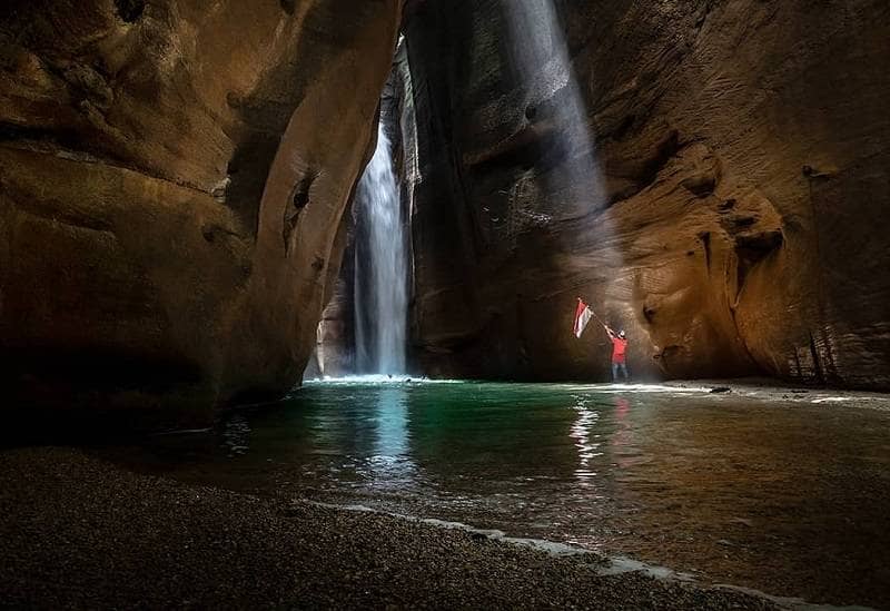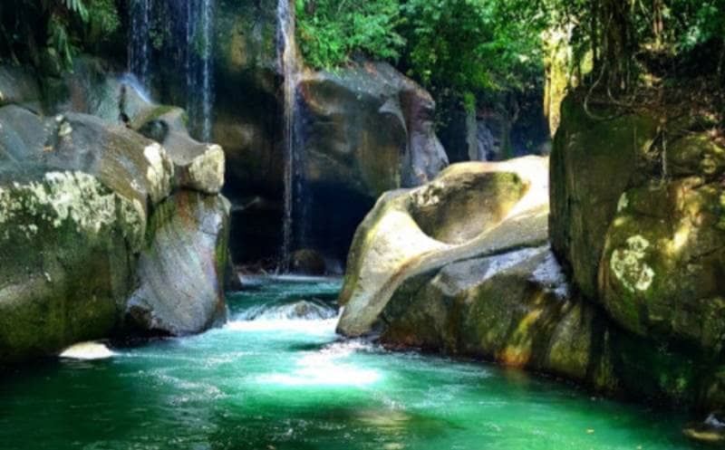 memiliki ciri khas yakni adanya tebing dan bebatuan yang sekaligus berpadu dengan hijaunya dedaunan. Tidak hanya dapat berfoto, pengunjung juga dapat mencoba sensasi menaiki tebing. Bagi kamu yang ingin menguji adrenalin, melompat dari atas tebing menuju ke kolam di bawah air terjun tentu menjadi hal menantang yang bisa kamu coba. (*)