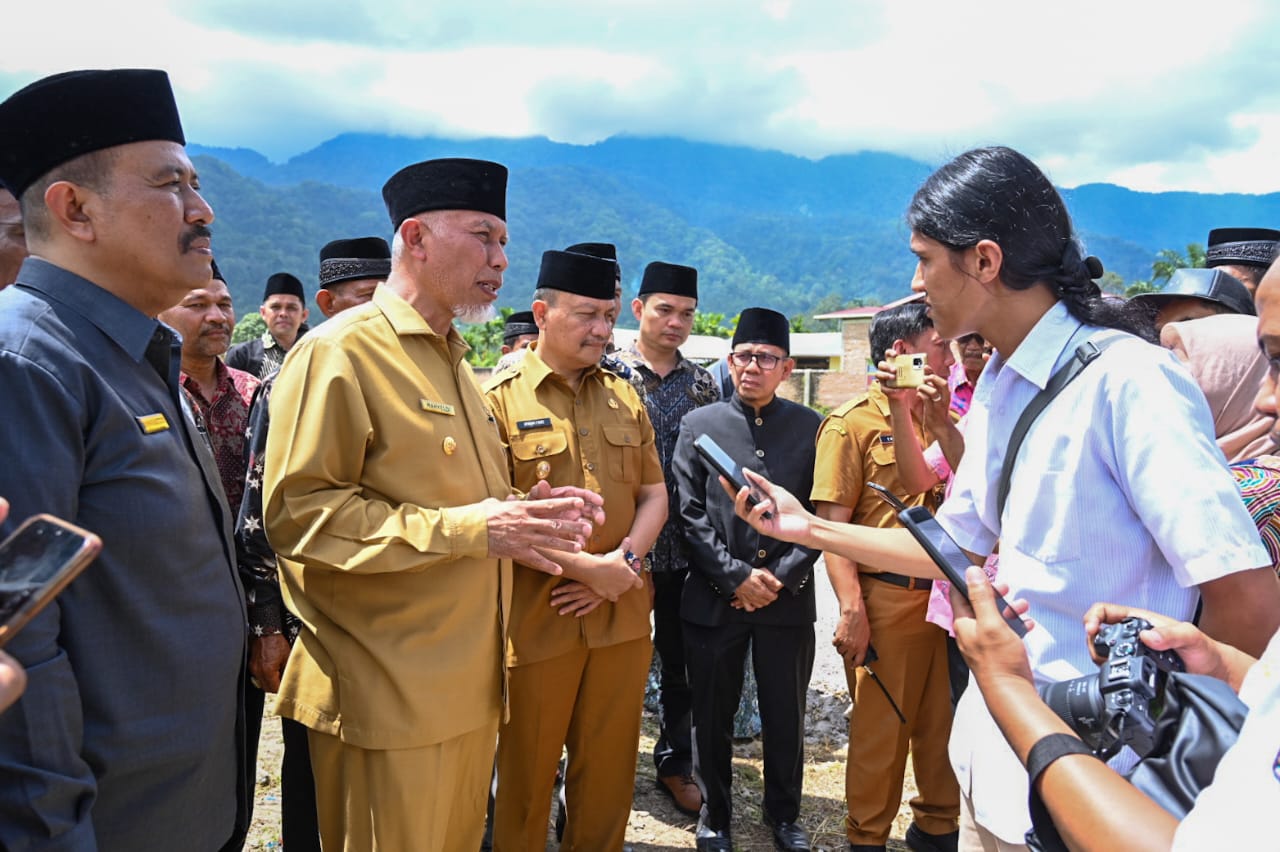 Gubernur Mahyeldi saat menghadiri peletakan batu pertama pembangunan rumah gadang Suku Tanjuang Salingka Danau Maninjau di Tanjuang Batuang, Kabupaten Agam, Senin (15/5/2023).Ist
