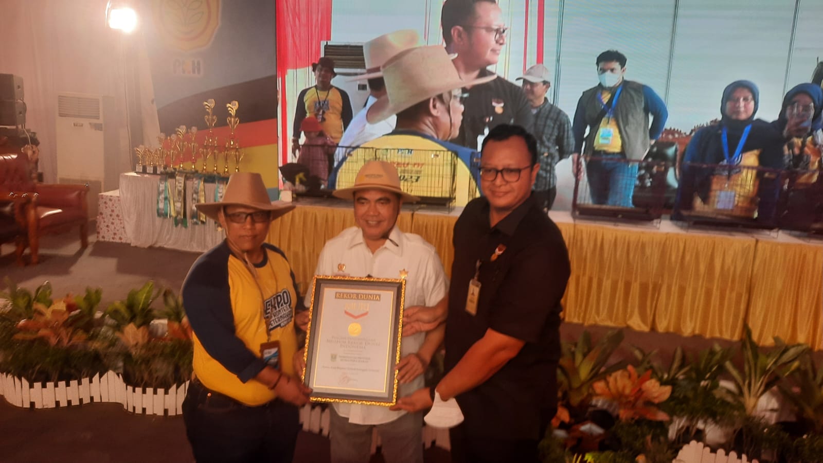 Rekor tersebut diserahkan oleh Direktur Museum Rekor Dunia Indonesia (MURI), Awan Rahargo Minggu (11/6/2023) pada Pekan Nasional (Penas) Kontak Tani Nelayan Andalan (KTNA) ke XVI tahun 2023 di Sumatera Barat (Sumbar) di Lapangan Udara Tabing, Padang.