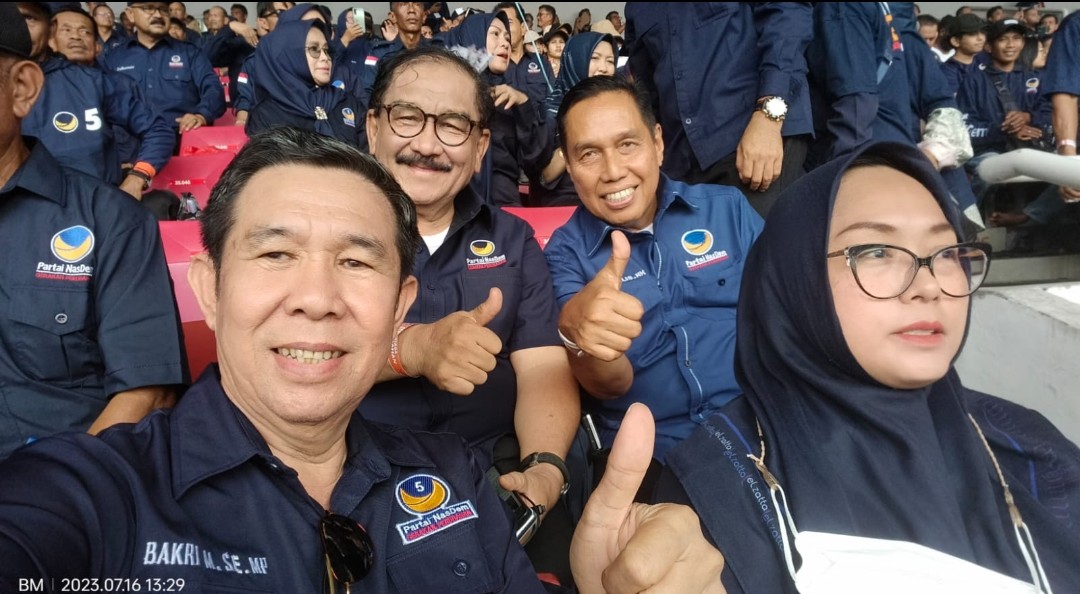 PADANG — Bakal Calon Bupati (Balonbup) Pessel 2024-2029, Bakri Maulana, SE, MP tampak hadir dalam Apel Siaga Partai Nasdem di Stadion Utama Gelora Bung Karno (GBK), Jakarta.