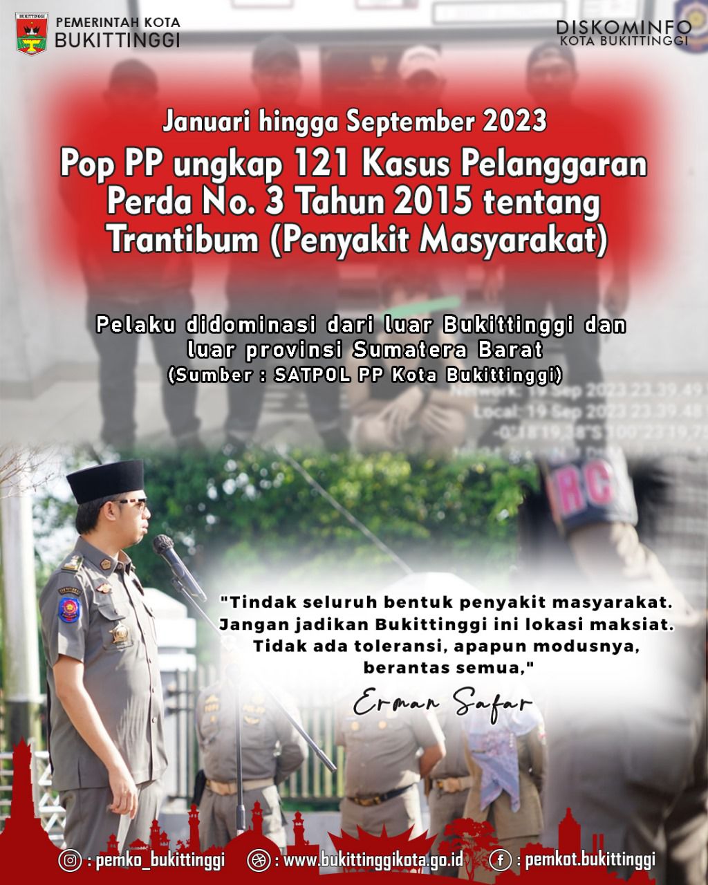 Wali Kota Bukittinggi, H. Erman Safar, menegaskan pada petugas Satpol PP untuk terus bergerak, tanpa tebang pilih.