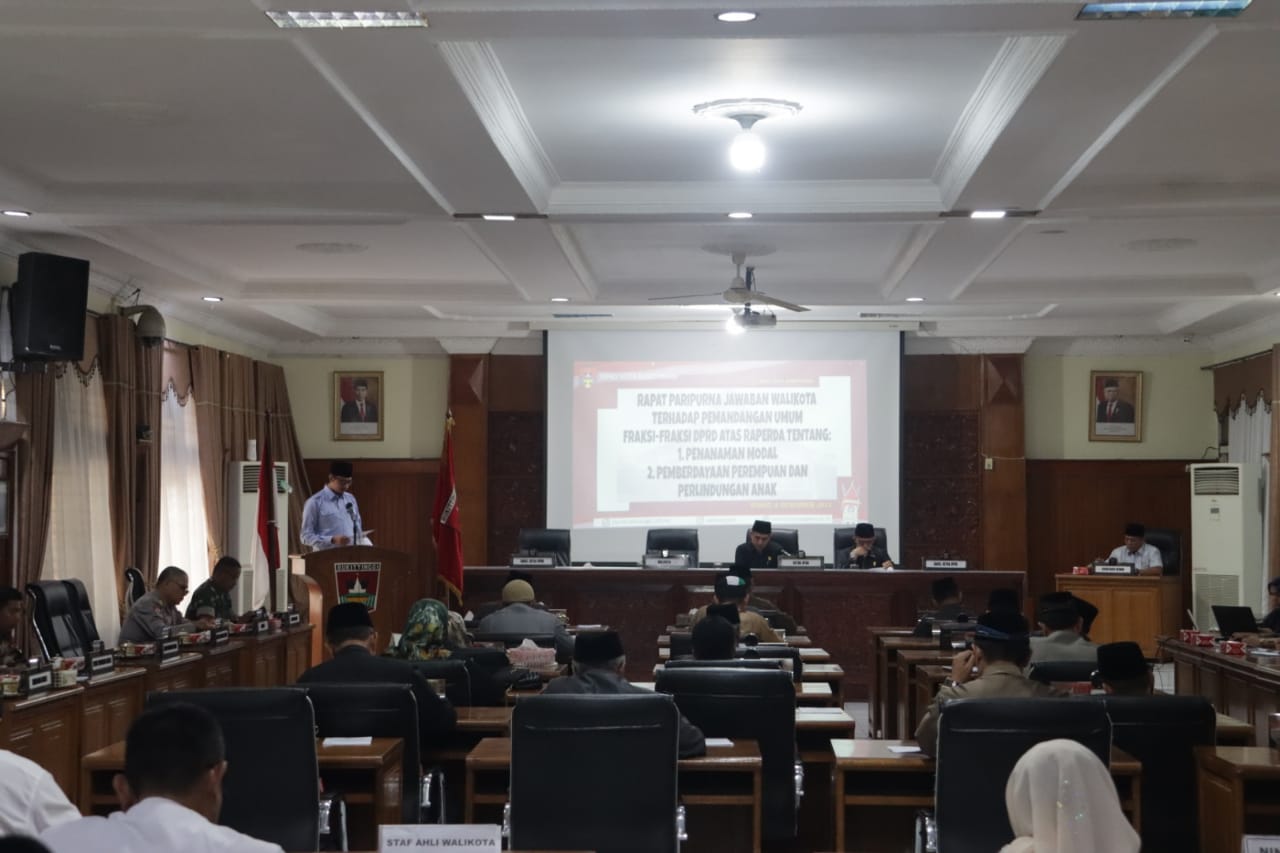 BUKITTINGGI – DPRD Kota Bukttinggi menggelar Rapat Paripurna terhadap jawaban Walikota terhadap pemandangan umum fraksi fraksi DPRD raperda tentang, Penanaman Modal dan Pemberdayaan Perempuan dan Perlindungan Anak, Jum’at (8/12/2023).