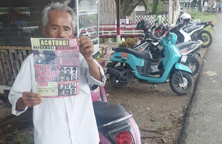 ”Dalam selebaran ini kami ungkap kasus penculikan aktivis, daftar korban yang hingga kini masih hilang. Kami juga mengungkap soal pemerkosaan konstitusi hingga melahirkan anak haram konstitusi yang kini melenggang dalam kontestasi pilpres,” ujarnya.