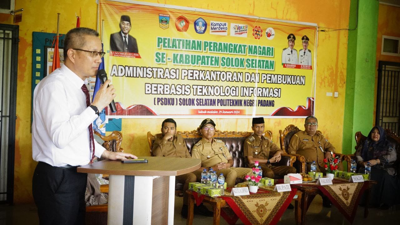 SOLOK SELATAN – Pemerintah Kabupaten dan DPRD Kabupaten Solok Selatan mendukung penuh keberadaan kampus Politeknik Negeri Padang (PNP) PSDKU Lubuk Malako. Hal tersebut ditegaskan kembali oleh Bupati dan Ketua DPRD ketika hadir membuka pelatihan bagi perangkat nagari di kampus tersebut.
