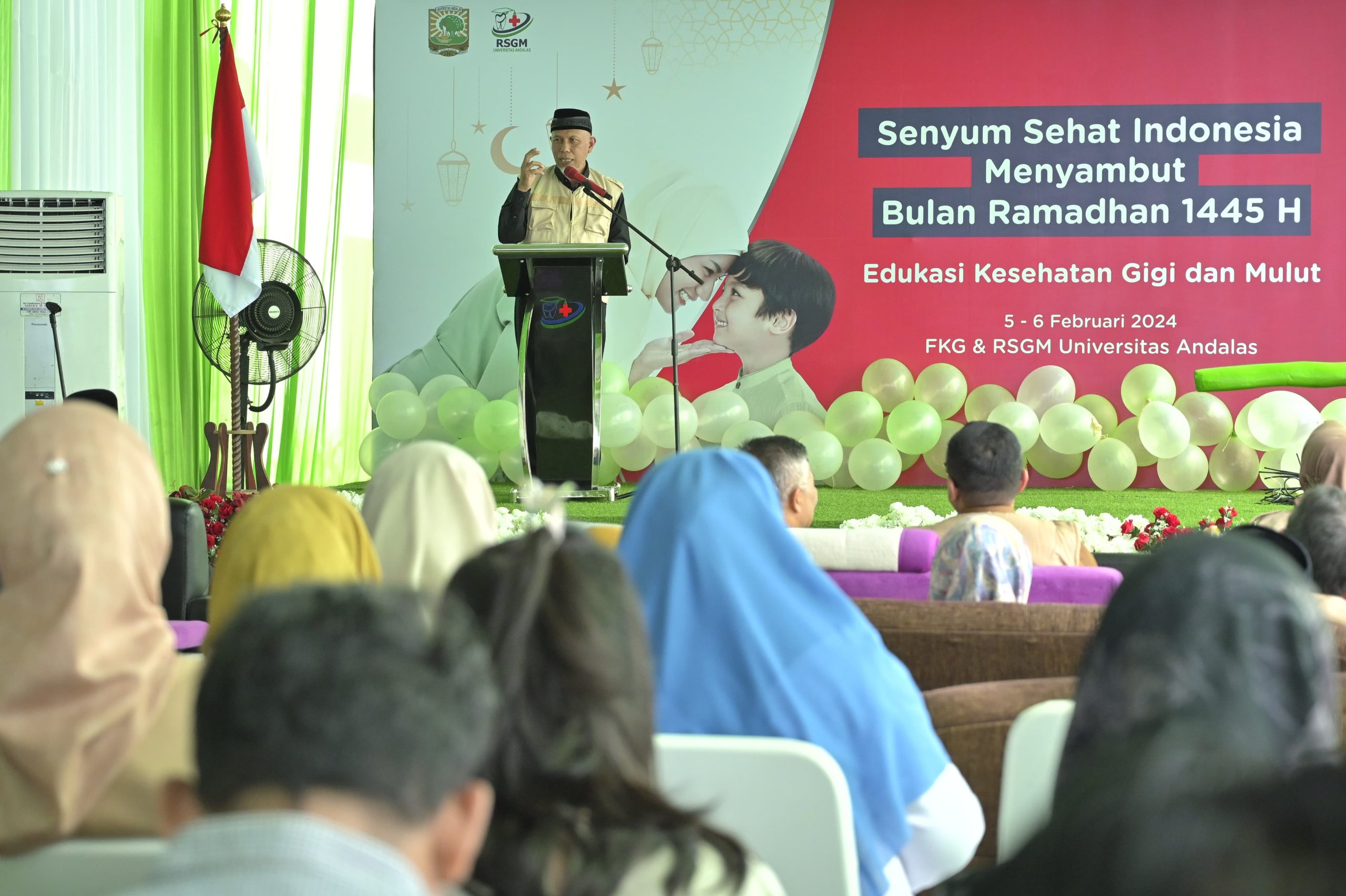 PADANG- Fakultas Kedokteran Gigi (FKG) dan Rumah Sakit Gigi dan Mulut (RSGM) Universitas Andalas (Unand) menggelar iven Senyum Sehat Ramadhan, Senin (05/02/2024). Kegiatan tersebut mendapatkan apresiasi dari Gubernur Sumbar, Mahyeldi.