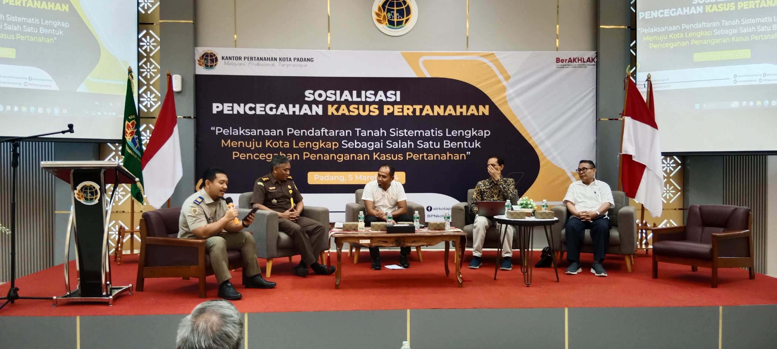 Hal ini diungkapkan Ibenzani, dalam sosialisasi pencegahan kasus Pertanahan” Pelaksanaan Pendaftaran Tanah Sistem Lengkap Menuju Kota Lengkap Sebagai Salah Satu Bentuk Pencegahan Penanganan Kasus Pertanahan di Aula Kanwil BPN/ATR Sumbar.