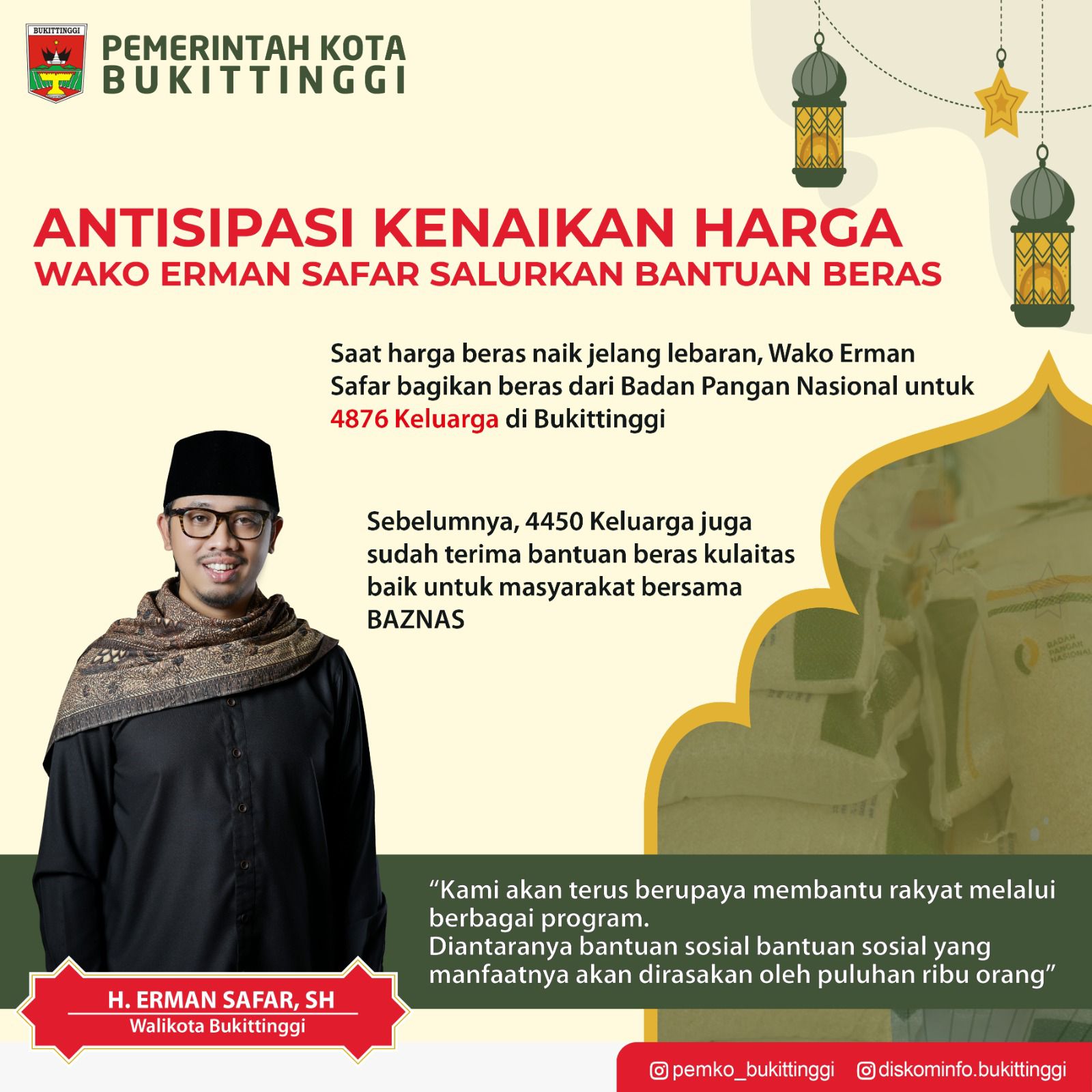 Pemerintah Kota Bukittinggi jelasnya, hari ini Saat membagikan beras yang bersumber dari Badan Pangan Nasional untuk 4.876 keluarga di Bukittinggi.