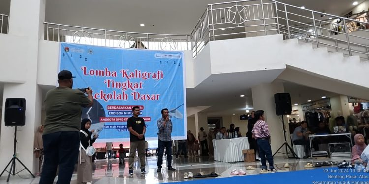 BUKITTINGGI – Dinas Pariwisata Kota Bukittinggi melalui Dana Pokok Pikiran (Pokir) tahun 2024 dari anggota DPRD Erdison Nimli menggelar Lomba Kaligrafi yang diikuti oleh ratusan siswa/i Sekolah Dasar (SD) se-Kota Bukittinggi.