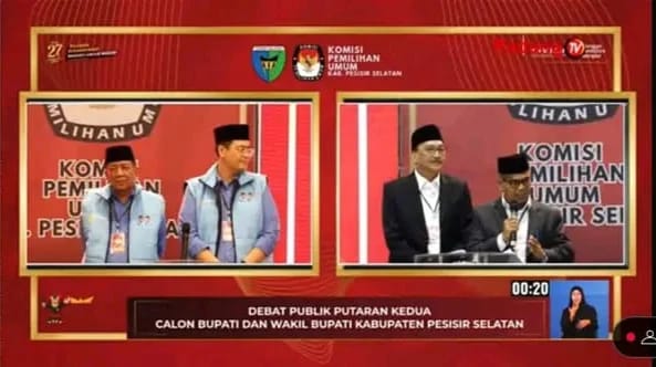 Debat Pilkada Pessel yang ditayangkan di tv lokal di Sumbar.