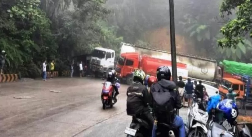 Sosmedya menjelaskan bahwa pada awalnya hanya satu truk trailer yang mengalami masalah, namun kemudian truk lainnya juga mengalami kerusakan di belakangnya.