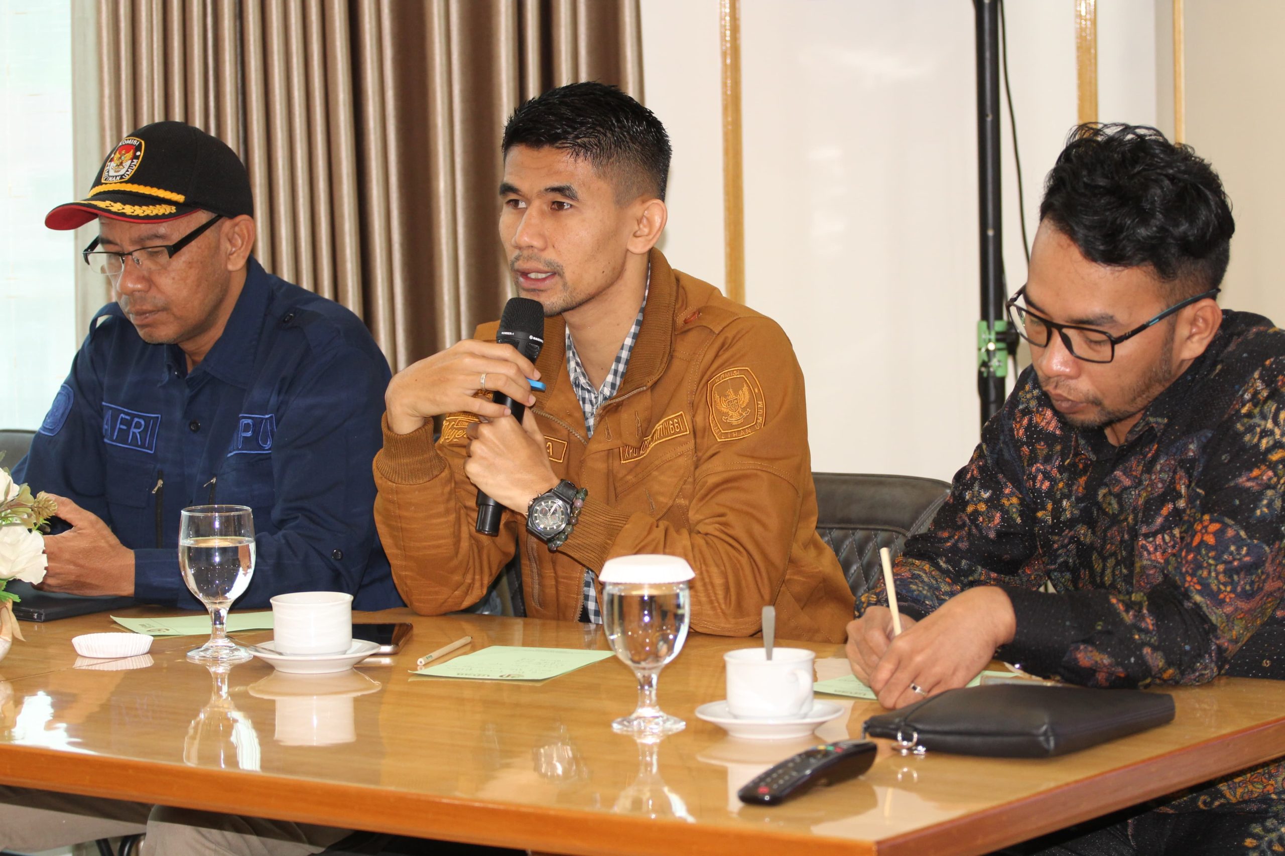 Acara jumpa pers dibuka Ketua KPU Kota Bukittinggi, Satria Putra dan dihadiri komisioner KPU yang lain.