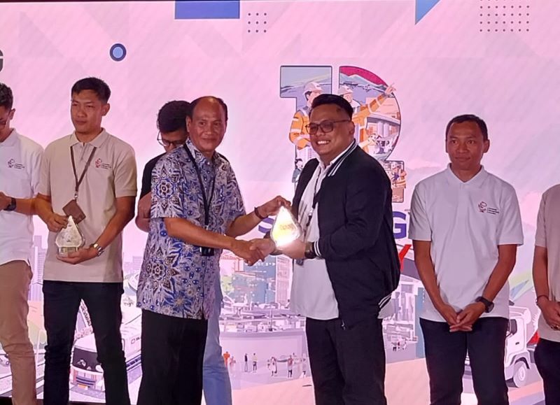 Penyerahan penghargaan untuk pemenang SIG-GIA 2024 oleh Direktur Bisnis & Pemasaran SIG, Subhan, kepada perwakilan Tim Nabuang Sarok, Doche Delson, pada peringatan HUT ke-12 SIG yang digelar secara hybrid di South Quarter, Jakarta, Selasa (7/1/2025).Ist